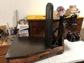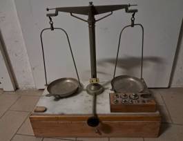 Vendo vecchia bilancia a bascula in legno, ferro e ottone costruita tra il 1900 e il 1920 prodotta dall'azienda Leonardo Bertani di Modena (azienda aperta nel 1898 e ancora in attività). Bilancia perfettamente funzionante trattata solo con finitura protettiva per barche.